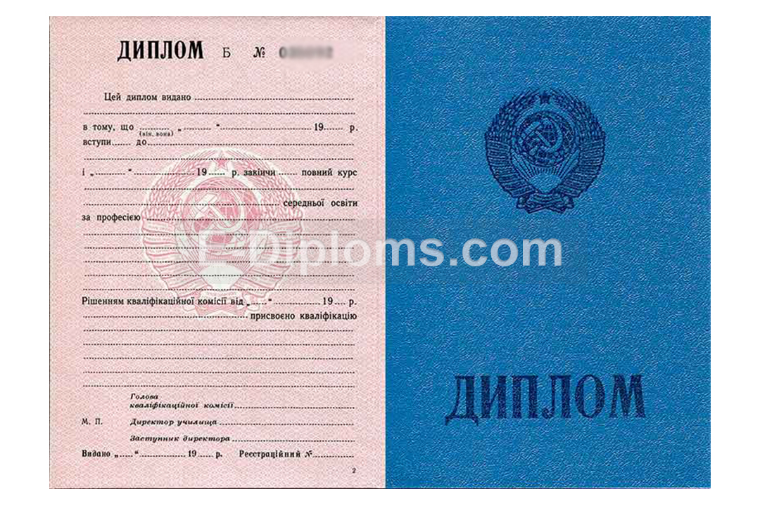 У нас на сайте Вы можете купить диплом пту ссср с окончанием любого технического училища в период с 1970-х годов до 1994 года включительно. Вам доступны документы не только РСФСР и других союзных республик (делаем по образцу). Доставка бесплатна, оплата при получении, для проживающих в регионах доступна услуга «макет», есть скидки. При заказе до 14.00 привезем уже завтра!